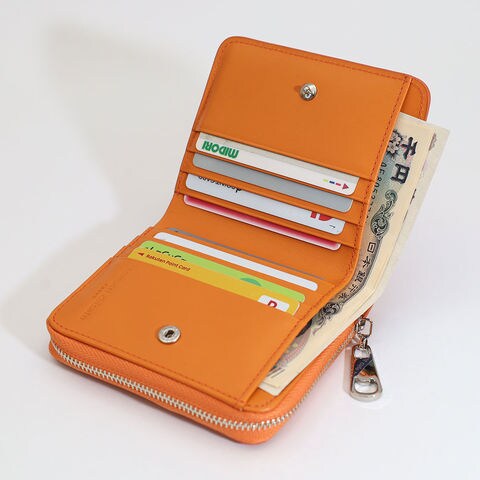 ミニバッグやポケットにも収まるサイズ感ながら、カード・小銭・お札をしっかり収納可能。ラウンドファスナー仕様で中身がこぼれにくく安心です。