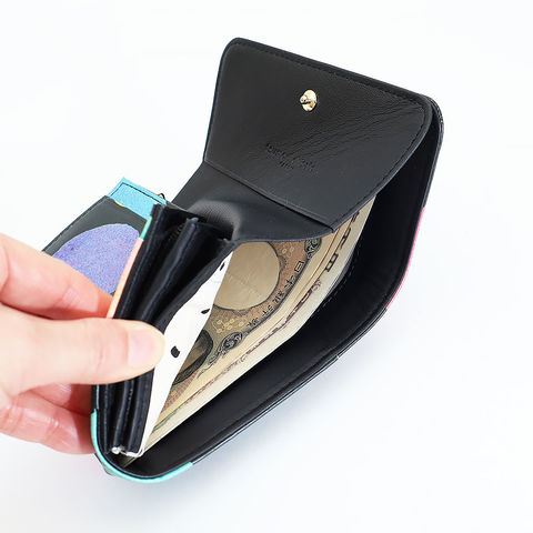 二つ折り財布ながら、使う人のことを考えた実用的な収納力が特徴。カード類や小銭、お札をすっきりと収められるスペースがあり、デイリーに必要な機能性をしっかり備えています。見た目と使いやすさを両立したバランスの良い作りです。