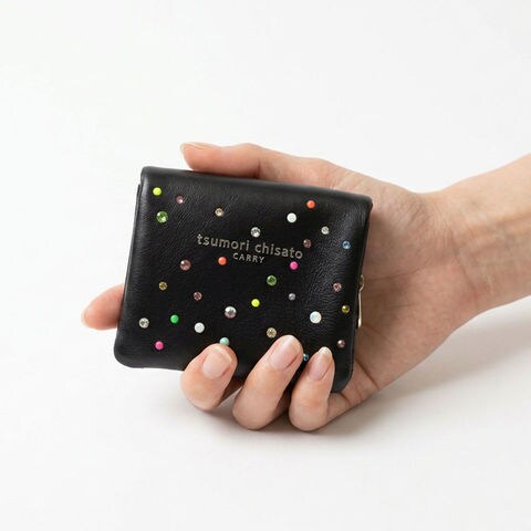 小さなキャンディーのような石が散りばめられた、遊び心あふれるデザインが魅力のミニ財布。華やかさがありながらも派手すぎず、上品で大人可愛い雰囲気に仕上げられています。バッグから取り出すたびにきらめきが目を引き、持つ人の気分まで明るくしてくれるツモリチサトらしいデザインです。
