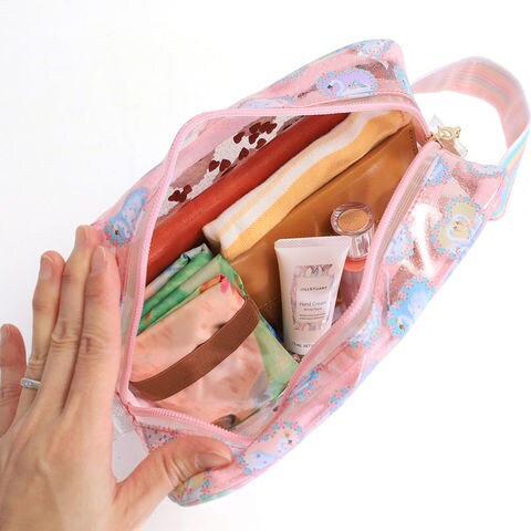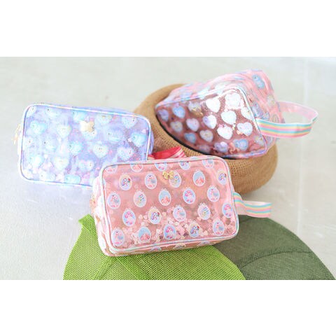 中身が見えて、手首に引っ掛けて持ち運びできるポーチは、