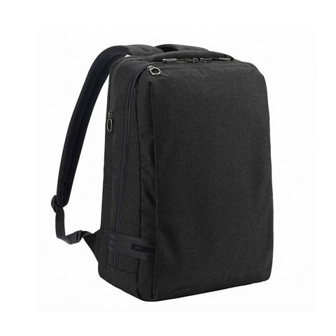 パソコンとその他の荷物を分けて収納できる2気室タイプ。背面にはファスナー付きのセキュリティポケットもあり、防犯面にも配慮されています。