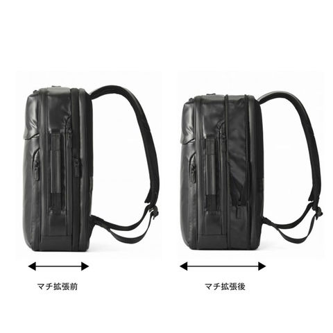 通勤時はスマートに、出張時は大容量に。荷物量に応じてマチ幅を広げられるエキスパンド機能を搭載。スリムなフォルムを保ちながら、必要な時だけしっかり収納できるフレキシブルな設計で、オンオフ問わず活躍します。