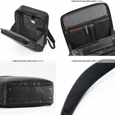 ノートPC(15.6インチ)やB4ファイルがしっかり収まる設計。内装のオーガナイザーポケットも充実しており、ケーブル・文具・書類などを整理しながら持ち運び可能。スリムなのに必要十分な容量が魅力です。