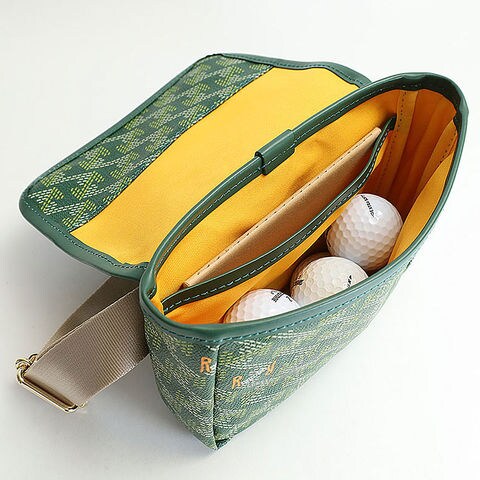 ボール3個にティー、グリーンフォーク、距離計にスマホまで、必要なグッズをコンパクトに収納可能。