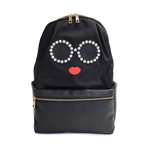 パールで縁取ったサングラスがとってもキュートな顔のリュックです。