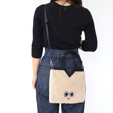 もこもこのフェイクファーにパールで縁取ったサングラスがとってもキュートな顔のハンドバッグです。