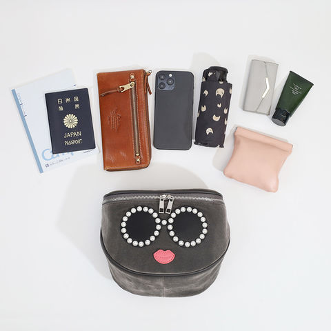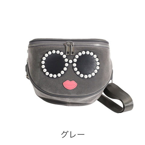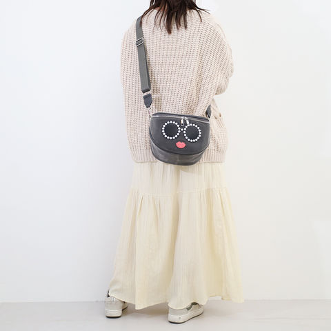 a-jolieらしいユニークな“顔”デザインに、パールで縁取られた大きなサングラスがアクセント。見た目のインパクトも抜群で、持つだけで気分が上がります。