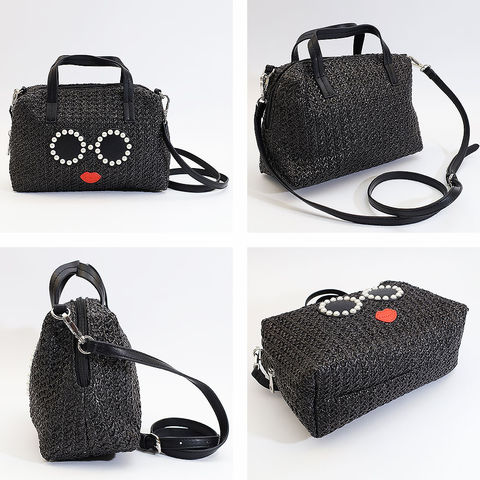 アジョリーのアイコンともいえるパールサングラスちゃんをあしらった、遊び心あふれるデザイン。パールのサングラスと愛らしい表情が印象的で、持つだけでコーディネートのアクセントになります。大人の可愛らしさを表現した、ブランドらしい魅力が詰まったバッグです。