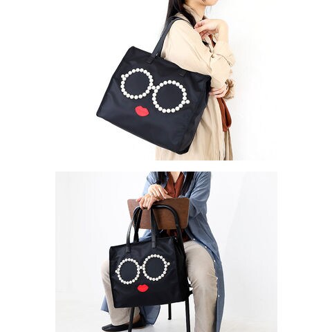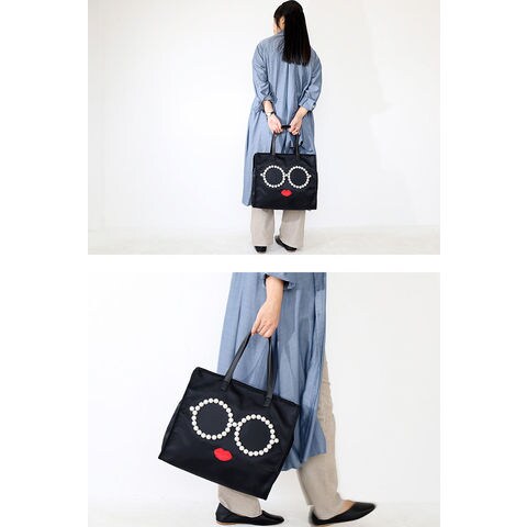 サングラスやスマイルをモチーフとしたバッグや小物で大人気のアジョリーから、A4サイズの入るトートバッグがジップ付きで登場。