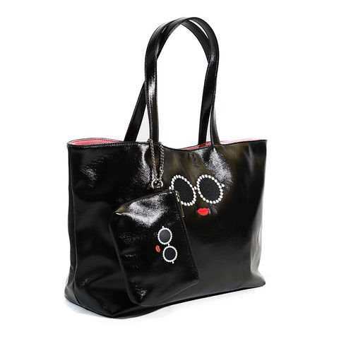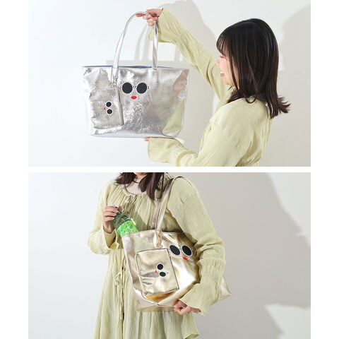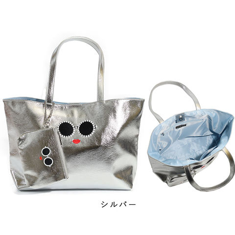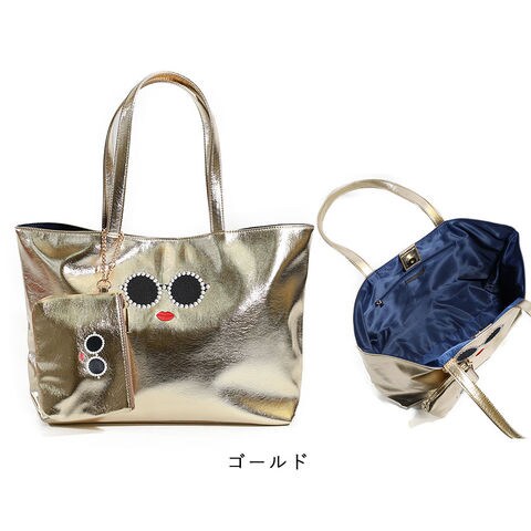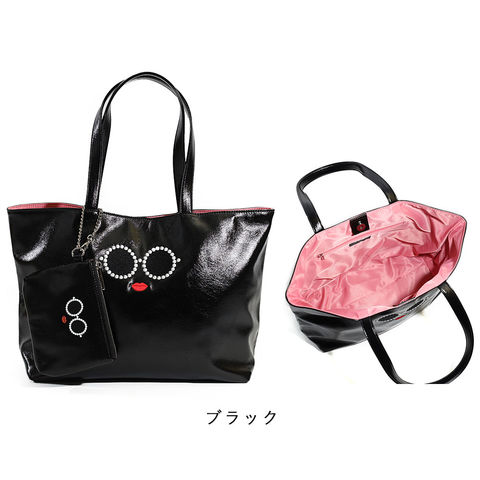 サングラス&赤いLIPがキュートな「パールサングラスちゃん」のミニポーチ付きトートバッグ。