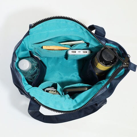 内側の両サイドには、ペットボトルや折りたたみ傘がすっぽり収まる専用ポケットを完備。縦にスッキリ収納できるからバッグの中がごちゃつかず、整理整頓がしやすいのも嬉しいポイント。