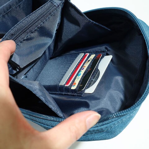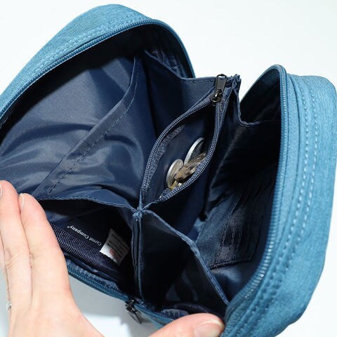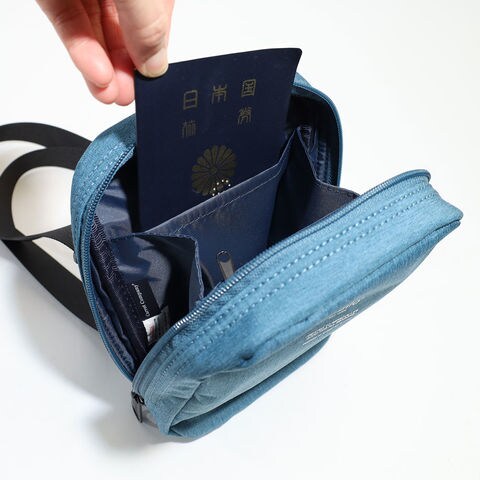 スマホやパスポート、カードや小銭入れも付いた万能アイテムです。