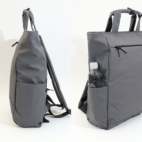 混雑した電車内ではトートとして、アクティブに動く日はバックパックとして使える便利な2WAY設計。シーンに合わせて持ち方を変えられます。