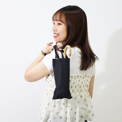 リネンライクな風合いの生地に、バンブー素材の手元を組み合わせたナチュラルで洗練されたデザイン。夏のコーディネートに涼やかなアクセントを加えます。