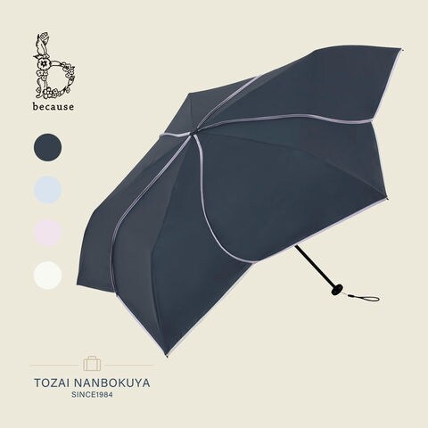 because ビコーズ PUスーパーライト バイカラーパイピング ミニ レイングッズ 折り畳み 日傘 b-094917 レディース 雨 お出かけ 丈夫 軽量 バッグ 財布 帽子 アパレル 傘【ネイビー】