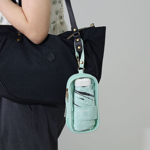 濡れた傘と小物を分けて収納できる2層式。傘を使った後もバッグの中を濡らさずスマートに持ち運べます。