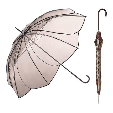because ビコーズ クリアアンブレラ カラーパイピング レイングッズ 長傘 b-530103 レディース 雨 お出かけ バッグ 財布 帽子 シンプル アパレル 傘 雨傘 晴雨兼用傘 生地【ブラウン】