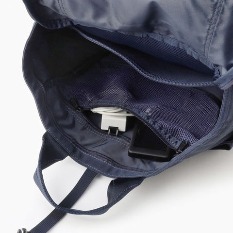 広い開口部と大容量のメイン収納で、ジムウェアやシューズもすっきり収納。さらにPCスリーブを搭載し、仕事帰りにそのままジムへ向かえるスマートな使い勝手を実現しています。