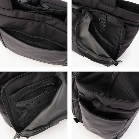 メイン素材には、コーデュラエアー糸840デニールを強撚しオックス織りにした高機能ファブリックを使用。優れた軽量性と撥水性を兼ね備え、雨の日の通勤や移動時にも安心です。しっかりとしたハリとコシを持ちながらも、手触りは滑らかで柔らかく、使うほどにしなやかに馴染む素材感が魅力です。