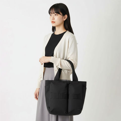 肩掛け・手持ちの両方に対応するデザインで、シーンに合わせた持ち方が可能。通勤時のビジネスバッグとしてはもちろん、休日の街歩きや出張先でのサブバッグとしても活躍します。軽快な使い心地と都会的なルックスを両立し、日常をスタイリッシュに支える万能トートです。