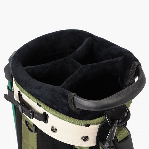アメリカのカントリークラブとクラシックなアウトドアウェアを着想源に、フォレストグリーンのロゴ刺繍とモスグリーンのテープを配置。自然の落ち着きと温もりを感じさせる配色が、コースに溶け込みながら個性を演出します。