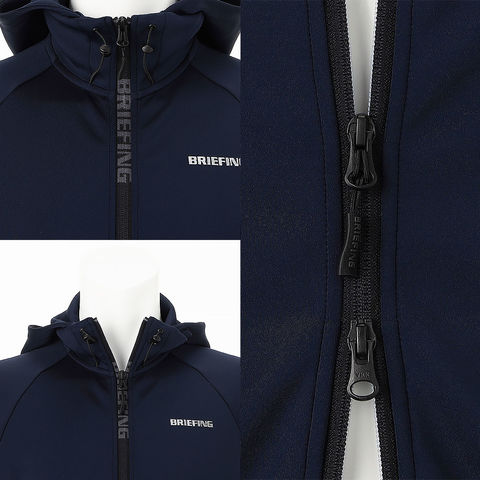 フロントポケットにはジップを採用し、中身の飛び出しを防止。小物をスマートに収納でき、ラウンド時の利便性を向上させます。スタイリッシュな見た目と実用性を兼ね備えた、BRIEFINGらしい機能的ディテールです。