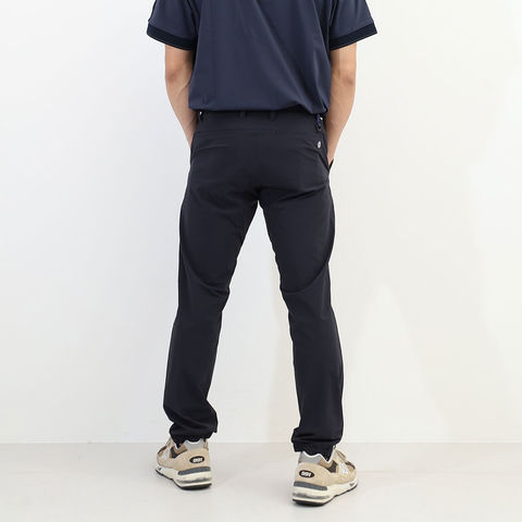 裾リブ仕様で動きやすく、スポーティな印象を持ちつつ、ポケット周りなどにはスラックスのディテールを取り入れて上品な表情をプラス。カジュアルになりすぎず、大人のゴルフスタイルにフィットします。