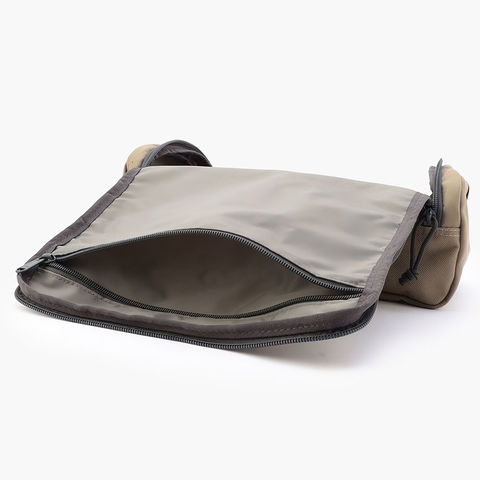 アウトポケットをあえて設けず、すっきりとした外装に仕上げています。シューズケース単体としてはもちろん、キャディバッグやトートバッグの中にも収まりやすく、持ち運びのしやすさが魅力です。