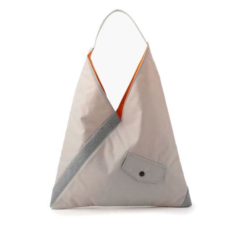 三角形のフォルムが特徴的なトートバッグに、MA-1のデザインソースを落とし込みました。