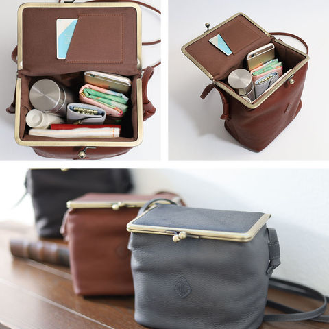 また、口金はスクエア型のがま口を採用。カパッと大きく開き、
