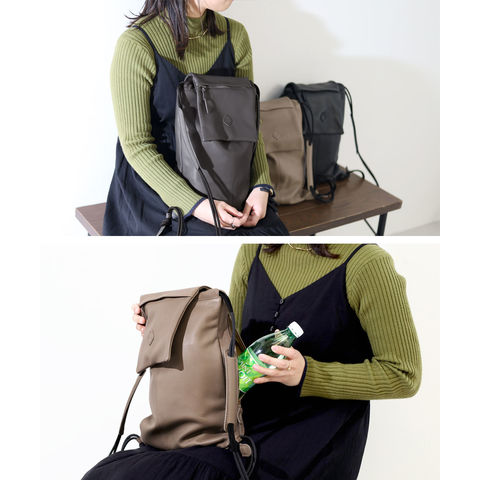 フラップ型のジッパーポケット付きで、絞った口元を隠せるのもポイントです。