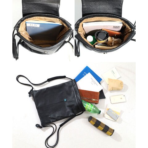 内ポケット2つで収納力も◎。口を絞ればA5、絞らなければA4サイズも収納可能。