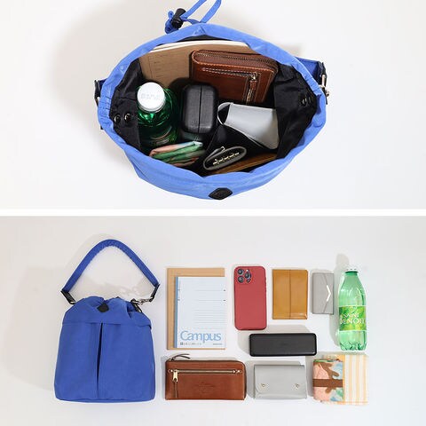 中には長財布、ペットボトル、折り畳み傘、眼鏡ケース、文庫本などしっかり収めることができました。