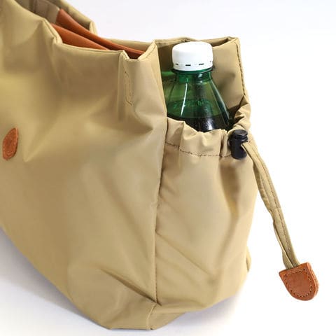 開口部は調節具つきなのでボトルなどを入れても飛び出しません。