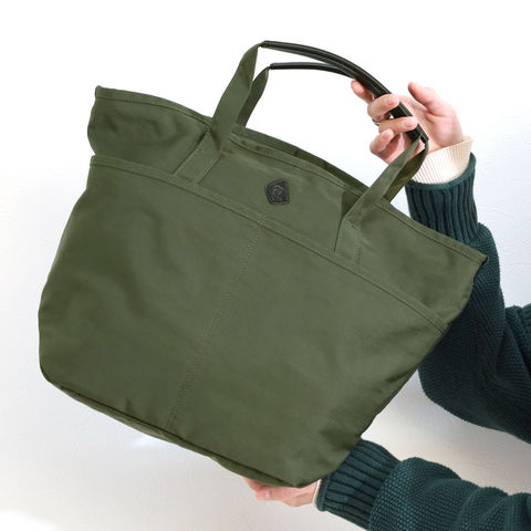 さらさらとした素材感のナイロン仕立てのトートバッグ。軽量で扱いやすいのがポイントです。