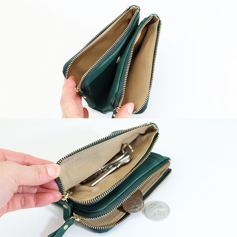 小銭室が二部屋に分かれているため、硬貨の種類やレシートなどを自然に仕分けできます。使う人のクセに寄り添う実用的な構造で、中身がごちゃつきにくく会計時の動作もスマートに整います。
