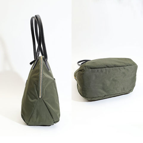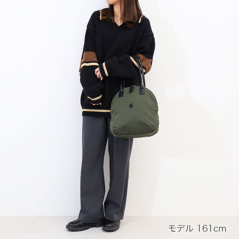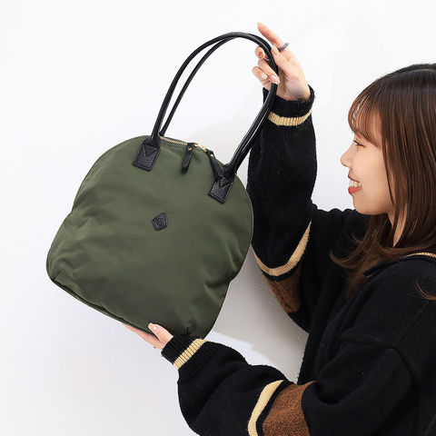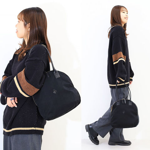 軽やかに持てるナイロン素材にレザーハンドルを組み合わせ、扱いやすさと大人らしい落ち着きを両立しました。長時間のおでかけでも負担になりにくく、手持ちでも肩掛けでもしっかり決まる万能なバランスが日々の相棒にぴったりです。