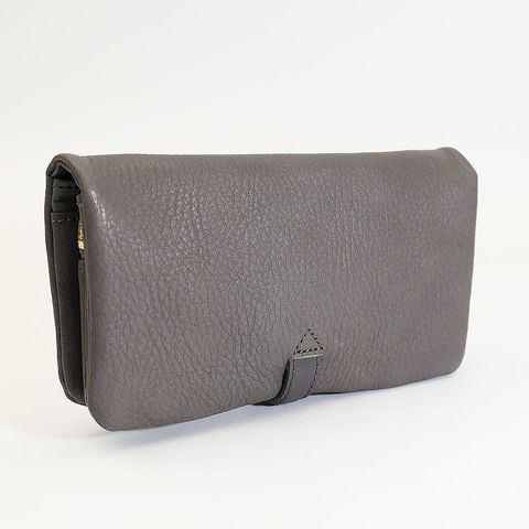 留め位置が自由に動くスライド式の留め具を採用することで、中身が増えても自然にフィットし、膨らみにくいのが魅力。カードや小銭を多めに持ち歩く方でもスマートな形をキープできます。上品で個性的なこの留め具は、デザイン性と実用性を兼ね備えた魅力的なポイントです。