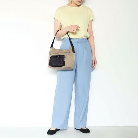 ほどよいハリと柔らかさを併せ持つナイロン素材を使用し、軽やかな持ち心地を実現。長時間持ち歩いても負担になりにくく、毎日の外出や通勤でも快適に使えます。カジュアルな素材感ながら上品な印象もあり、大人のデイリーバッグとして自然に馴染む使いやすいトートバッグです。