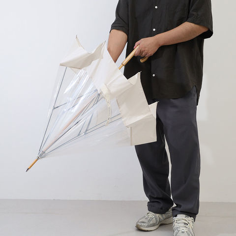 素材:生地/透明部分:ポリエチレン/裾生地部分:ポリエステル100%(防水はっ水加工)ハンドル素材/合板 白木ウッド