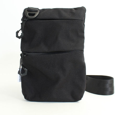 縦型のミニポシェット。旅先やチケットの収納、携帯の収納などを考慮したサイジングで、ショルダーはイージーアジャストシステムになっています。