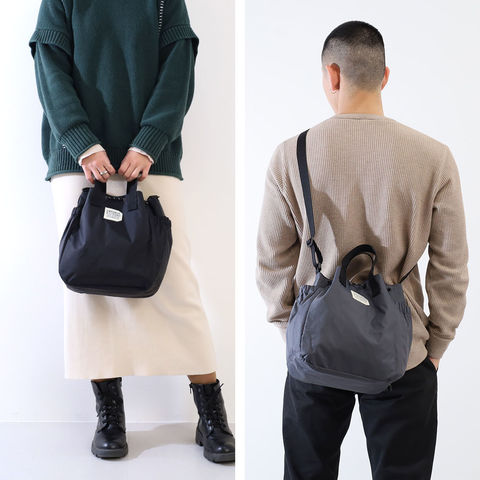 ショルダーとトートの2WAY仕様でシーンに合わせて使い分け可能。自立するから置き場所にも困りません。