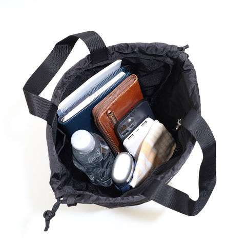 ストラップは調整・取り外しが可能。斜め掛けでカジュアルに、手持ちで巾着トート風にと、シーンに合わせて雰囲気チェンジできます。