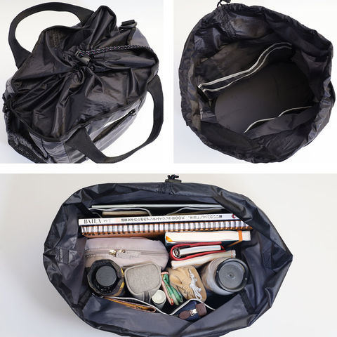 ドローコードで素早く開閉できる巾着タイプを採用。大きく開くため中身が見やすく、片手でも扱いやすい設計です。赤ちゃんを抱っこしたままでも荷物の出し入れがしやすく、日常使いの利便性を高めています。
