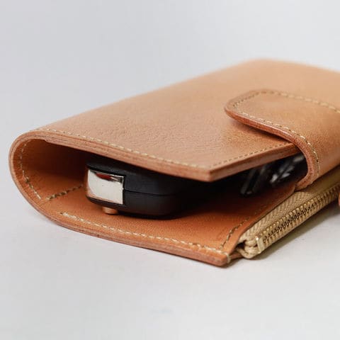 カードのほか、三つ折りにした紙幣や小銭、スマートキーなども自由に収納でき、これひとつで身の回りの必需品をまとめられます。