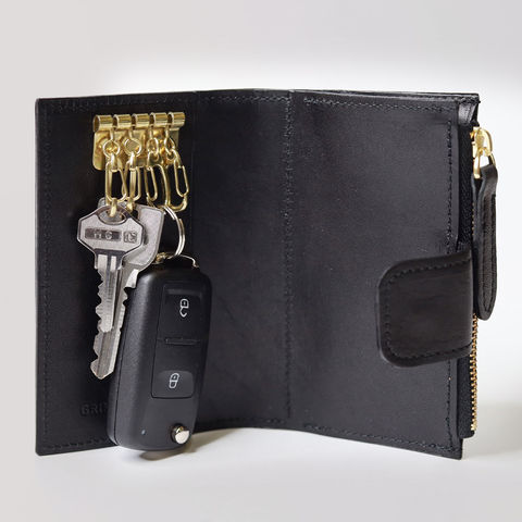 GRIMM LAB キーケース 革 スマートキーケース 本革 牛革 日本製 ファスナーポケット付キーケース ウォレットキーケース 鍵 小銭 カード ブラック ベージュ 黒 ブランド 小銭入れ マルチケース グリムラボ gl-00008 ギフト オリジナル ハンドメイド ナチュラル クラフト