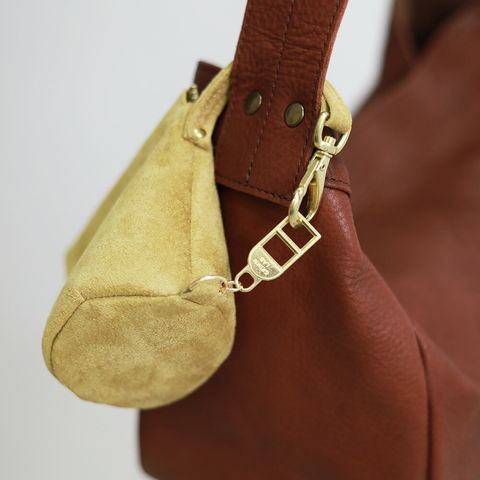 カップの取っ手をイメージしたバンドの先にはフックが付いており、バッグなどにチャームのように吊り下げられます。