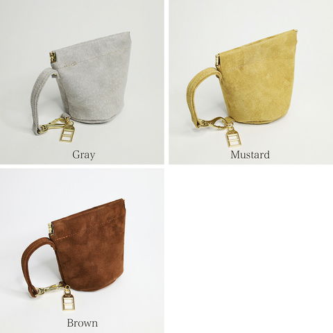 GRIMM LAB グリムラボ ポーチ 日本製 レザー スウェード 軽量 財布 かわいい 本革 gl-00027 スエード サブバッグ コインケース ナチュラル 工房