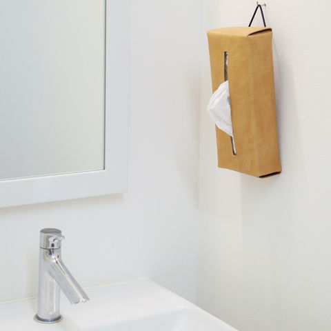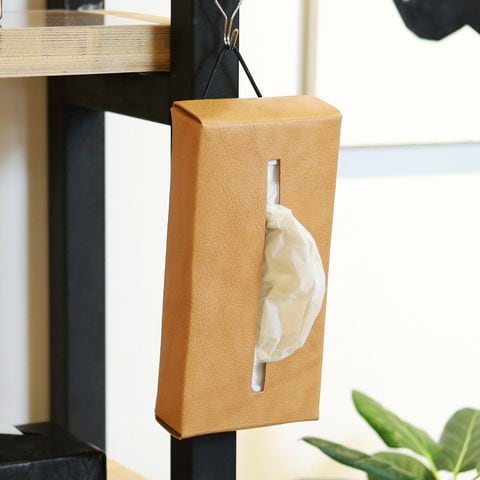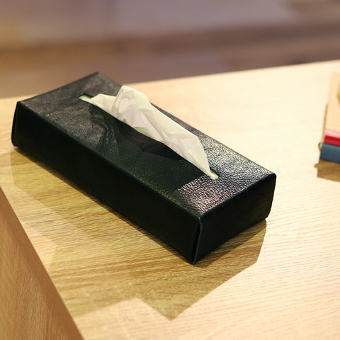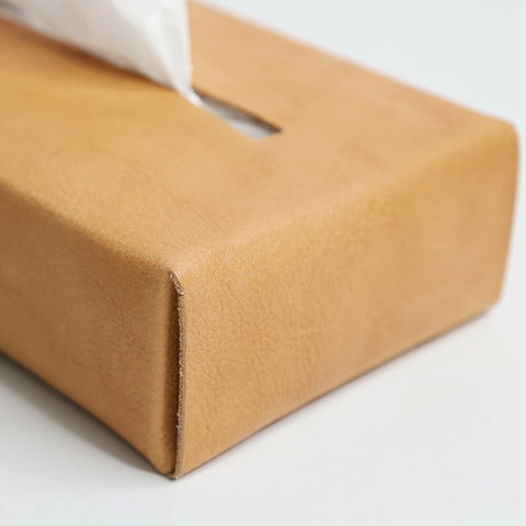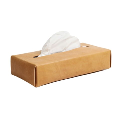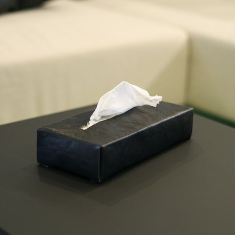 一枚革で仕立てた、シンプルなボックスティッシュカバー。