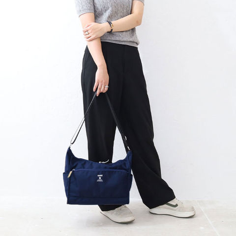 ポリエステル素材に強撥水加工を施し、雨の日でも中身が濡れにくくて安心。大きめのマチで収納力も高く、荷物が多い日でもスマートに対応できます。